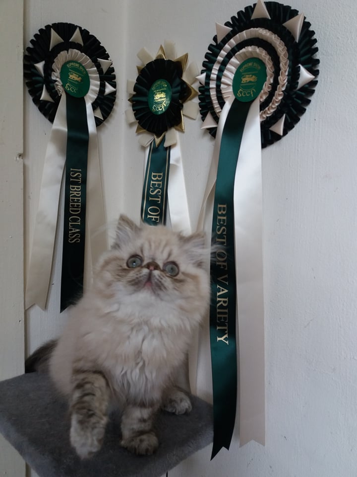 Three more gorgeous kittens left on their mission to bring love, pleasure and companionship to the world: Angelina, a chocolate-tortie point and red tabby points Araminta and Quintus Arrius. After hand-rearing their little brother Bertie we couldn’t bear to part with him, so he has stayed here and already done us proud as Best Persian Kitten at the Irish Supreme and Cork Cat Club shows 2022. In October 2022 Bertie was overall Best in Show Persian at the Dublin show.